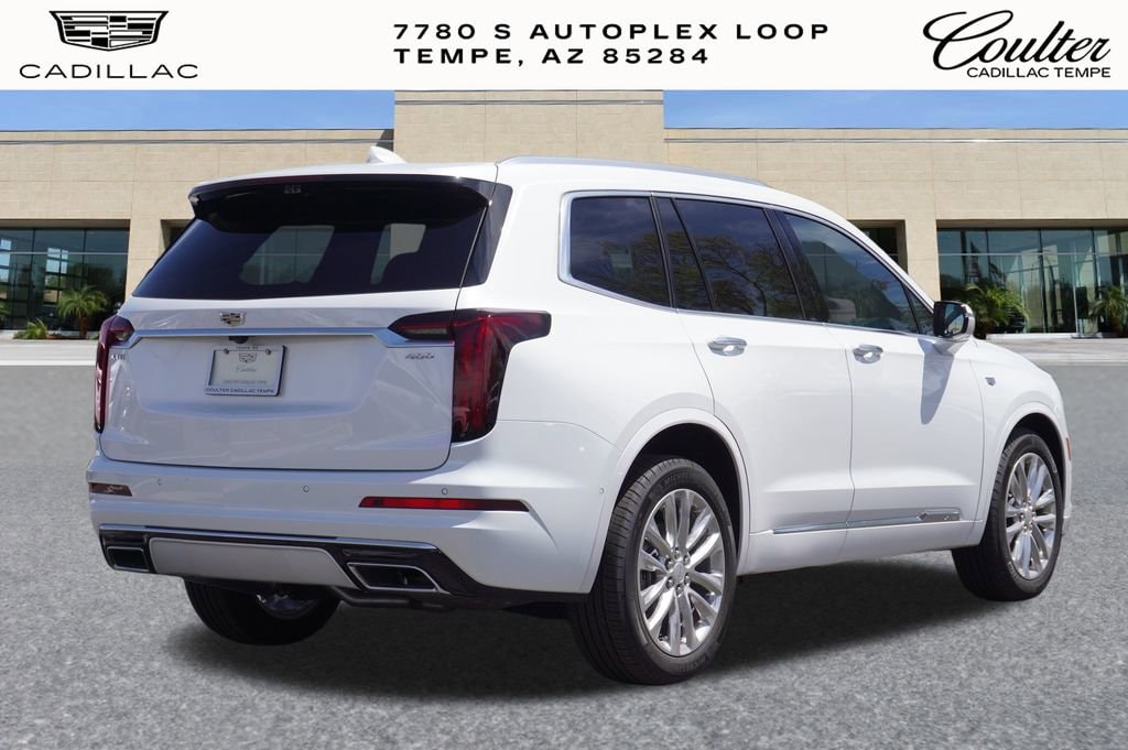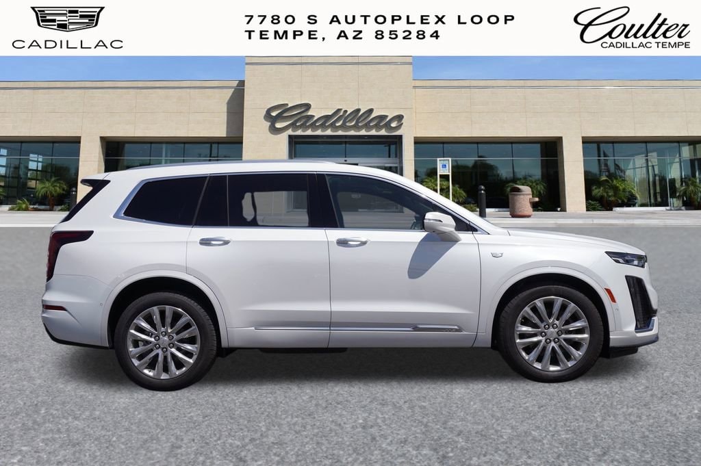 Experience The Difference At Coulter Tempe. Tempe Autoplex - i-10 and Elliot Road. Proud to be part of the Coulter Automotive Group - serving Phoenix since 1923. The Cadillac XT6 is equipped with Driver Assist Package (Adaptive Cruise Control, Automatic Seat Belt Tightening, Enhanced Automatic Emergency Braking, and Reverse Automatic Braking), Premium Luxury Package 1SC (Automatic Emergency Braking, Dual Driver Info Center Display Gauge Cluster, Front & Rear Park Assist, Inside Rear-View Auto-Dimming Mirror, and Teen Driver), Radio: Cadillac User Experience w/Embedded Nav (Bose Performance Series Audio System and SiriusXM w/360L), Technology Package (8 Color Driver Information Center Display, Automatic Parking Assist w/Braking, HD Surround Vision, Head-Up Display, Rear Camera Mirror, Rear Camera Mirror Washer, Rear Pedestrian Alert, and Surround Vision Recorder), 14 Speakers, 2-Way Power Driver Lumbar Control Seat Adjuster, 2-Way Power Passenger Lumbar Control Seat Adjuster, 3.49 Axle Ratio, 3rd row seats: split-bench, 4-Wheel Disc Brakes, 6-Passenger Seating, 8-Way Power Driver Seat Adjuster, ABS brakes, Air Conditioning, Alloy wheels, AM/FM radio: SiriusXM with 360L, Audio memory, Auto High-beam Headlights, Auto tilt-away steering wheel, Auto-dimming door mirrors, Auto-dimming Rear-View mirror, Automatic Stop/Start w/Disable, Automatic temperature control, Brake assist, Bumpers: body-color, Compass, Delay-off headlights, Driver & Front Passenger Heated Seats, Driver door bin, Driver vanity mirror, Dual front impact airbags, Dual front side impact airbags, Electronic Stability Control, Emergency communication system: OnStar and Cadillac connected services capable, Four wheel independent suspension, Front anti-roll bar, Front Bucket Seats, Front Center Armrest, Front dual zone A/C, Front reading lights, Fully automatic headlights, Garage door transmitter, Genuine wood dashboard insert, Genuine wood door panel insert, Heated door mirrors, Heated front seats, Heated rear seats, Heated steering wheel, Illuminated entry, Knee airbag, Leather Seating Surfaces w/Mini-Perforated Inserts, Leather steering wheel, Low tire pressure warning, Memory seat, Navigation System, Occupant sensing airbag, Outside temperature display, Overhead airbag, Overhead console, Panic alarm, Passenger door bin, Passenger vanity mirror, Power door mirrors, Power driver seat, Power Liftgate, Power moonroof: UltraView, Power passenger seat, Power steering, Power windows, Radio data system, Rain sensing wipers, Rear air conditioning, Rear anti-roll bar, Rear reading lights, Rear seat center armrest, Rear window defroster, Rear window wiper, Remote keyless entry, Ride & Handling Suspension, Roof rack: rails only, Security system, Speed control, Speed-sensing steering, Split folding rear seat, Spoiler, Steering wheel memory, Steering wheel mounted audio controls, Tachometer, Telescoping steering wheel, Tilt steering wheel, Traction control, Trip computer, Turn signal indicator mirrors, Variably intermittent wipers, Ventilated Driver & Front Passenger Seats, Ventilated front seats, Voltmeter, Wheels: 20 12-Spoke Alloy w/Fully Polished Finish, and Wheels: 20 6-Split Spoke Alloy. Crystal White Tricoat 2024 Cadillac XT6 Premium Luxury FWD 9-Speed Automatic 3.6L V6 DI VVT19/26 City/Highway MPG Price includes: $1000 - Cadillac Bonus Cash Program. Exp. 11/03/2025 $1000 - Cadillac Financial APR & Down Payment Assistance Program: $1000 discount and 4.40% APR for 36 months. $29.70 per $1000 financed. Available to well qualified buyers who finance through Cadillac Financial. XGA. Exp. 11/03/2025