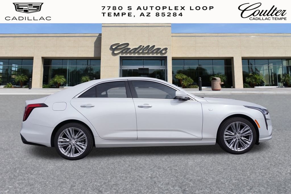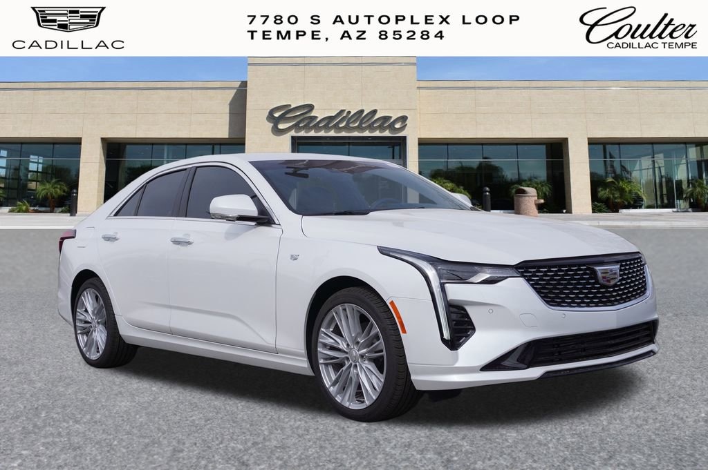 Experience The Difference At Coulter Tempe. Tempe Autoplex - i-10 and Elliot Road. Proud to be part of the Coulter Automotive Group - serving Phoenix since 1923. The Cadillac CT4 is equipped with Climate Package (Driver 4-Way Power Lumbar Seat Adjuster, Front Passenger 4-Way Power Lumbar Seat Adjuster, Heated Driver & Front Passenger Seats, Heated Steering Wheel, and Ventilated Driver & Front Passenger Seats), Preferred Equipment Group 1SD (Driver 2-Way Power Lumbar Seat Adjuster, Dual Digital Driver Information Center Display, Front Passenger 2-Way Power Lumbar Seat Adjuster, HD Rear Vision Camera, Leather-Wrapped Steering Wheel, LED Reflective Windshield Collision Alert, and Steering Wheel Mounted Paddle Shift Controls), 4-Wheel Disc Brakes, 8 Speakers, 8-Way Power Driver Seat Adjuster, ABS brakes, Air Conditioning, Alloy wheels, AM/FM radio: SiriusXM with 360L, Anti-whiplash front head restraints, Apple CarPlay/Android Auto, Auto High-beam Headlights, Auto-dimming door mirrors, Auto-dimming Rear-View mirror, Automatic Stop/Start w/Disable, Automatic temperature control, Brake assist, Bumpers: body-color, Compass, Delay-off headlights, Driver door bin, Driver vanity mirror, Dual front impact airbags, Dual front side impact airbags, Electronic Stability Control, Emergency communication system: OnStar and Cadillac connected services capable, Four wheel independent suspension, Front anti-roll bar, Front Bucket Seats, Front Center Armrest, Front dual zone A/C, Front Passenger 8-Way Power Seat Adjuster, Front reading lights, Fully automatic headlights, Garage door transmitter, HD Radio, Heated door mirrors, Illuminated entry, Knee airbag, Leather Seating Surfaces w/Mini-Perforated Inserts, Leather Shift Knob, Leather steering wheel, Low tire pressure warning, Memory seat, Occupant sensing airbag, Outside temperature display, Overhead airbag, Overhead console, Panic alarm, Passenger door bin, Passenger vanity mirror, Power door mirrors, Power driver seat, Power passenger seat, Power steering, Power windows, Premium 8-Speaker Audio System Feature, Radio data system, Radio: Cadillac User Experience, Rain sensing wipers, Rear anti-roll bar, Rear reading lights, Rear seat center armrest, Rear window defroster, Remote keyless entry, SiriusXM w/360L Trial Subscription, Speed control, Speed-sensing steering, Split folding rear seat, Steering wheel mounted audio controls, Tachometer, Telescoping steering wheel, Tilt steering wheel, Traction control, Trip computer, Turn signal indicator mirrors, Variably intermittent wipers, Voltmeter, and Wheels: 18 Alloy w/Sterling Silver Finish. Crystal White Tricoat 2025 Cadillac CT4 Premium Luxury RWD 8-Speed Automatic 2.0L Turbocharged