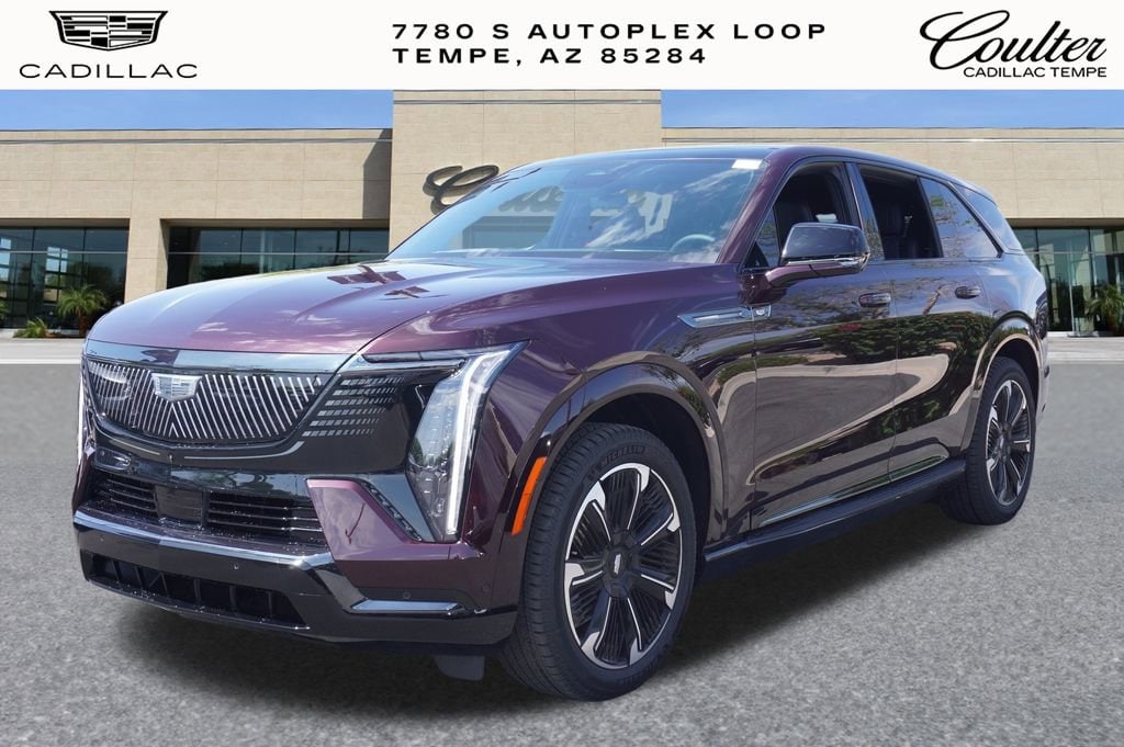 Experience The Difference At Coulter Tempe. Tempe Autoplex - i-10 and Elliot Road. Proud to be part of the Coulter Automotive Group - serving Phoenix since 1923. The Cadillac Escalade IQ is equipped with Preferred Equipment Group 1SF, Smart Trailering Package (19.2 Kw Ac High-Voltage Charging Module, Blind Zone Steering Assist with Trailering, Integrated Trailer Brake Controller, Smart Trailer Integration Indicator, Trailer Pressure Monitor (Lpo), Trailering App, and Wired Trailer View Camera), 21 Speakers, 3rd row seats: split-bench, 4-Way Power Driver Lumbar Seat Adjuster, 4-Wheel Disc Brakes, 8-Way Power Driver Seat Adjuster, 8-Way Power Front Passenger Seat Adjuster, ABS brakes, Adaptive suspension, Air Conditioning, AKG Studio 21-Speaker Audio System, Alloy wheels, AM/FM radio: SiriusXM with 360L, Audio memory, Auto High-beam Headlights, Auto-dimming door mirrors, Auto-dimming Rear-View mirror, Auto-leveling suspension, Automatic temperature control, Brake assist, Bumpers: body-color, Compass, Delay-off headlights, Driver door bin, Driver Memory, Driver vanity mirror, Dual front impact airbags, Dual front side impact airbags, Electronic Stability Control, Emergency communication system: OnStar and Cadillac connected services capable, Four wheel independent suspension, Front anti-roll bar, Front Bucket Seats, Front Center Armrest, Front dual zone A/C, Front reading lights, Fully automatic headlights, Garage door transmitter, Google Built-in, Heads-Up Display, Heated door mirrors, Heated Driver and Front Passenger Seats, Heated front seats, Heated rear seats, Heated steering wheel, HVAC memory, Illuminated entry, Inteluxe Seat Trim, Knee airbag, Leather steering wheel, Low tire pressure warning, Magnetic Ride Control Suspension, Memory seat, Navigation system: Google Automotive Services Capable, Occupant sensing airbag, Outside temperature display, Overhead airbag, Overhead console, Panic alarm, Passenger door bin, Passenger vanity mirror, Power door mirrors, Power driver seat, Power Liftgate, Power passenger seat, Power steering, Power windows, Radio data system, Radio: Infotainment Experience, Rain sensing wipers, Rear air conditioning, Rear anti-roll bar, Rear dual zone A/C, Rear reading lights, Rear window defroster, Rear window wiper, Reconfigurable Full-Color Head-Up Display, Remote keyless entry, Security system, SiriusXM with 360L Trial Subscription, Speed control, Speed-sensing steering, Split folding rear seat, Spoiler, Steering wheel mounted audio controls, Telescoping steering wheel, Tilt steering wheel, Traction control, Trip computer, Turn signal indicator mirrors, Variably intermittent wipers, Ventilated front seats, and Wheels: 24 7-Spoke Diamond Cut Face Alloy. Black Cherry Tintcoat 2025 Cadillac Escalade IQ Sport 1 AWD 1-Speed Automatic Electric Motor