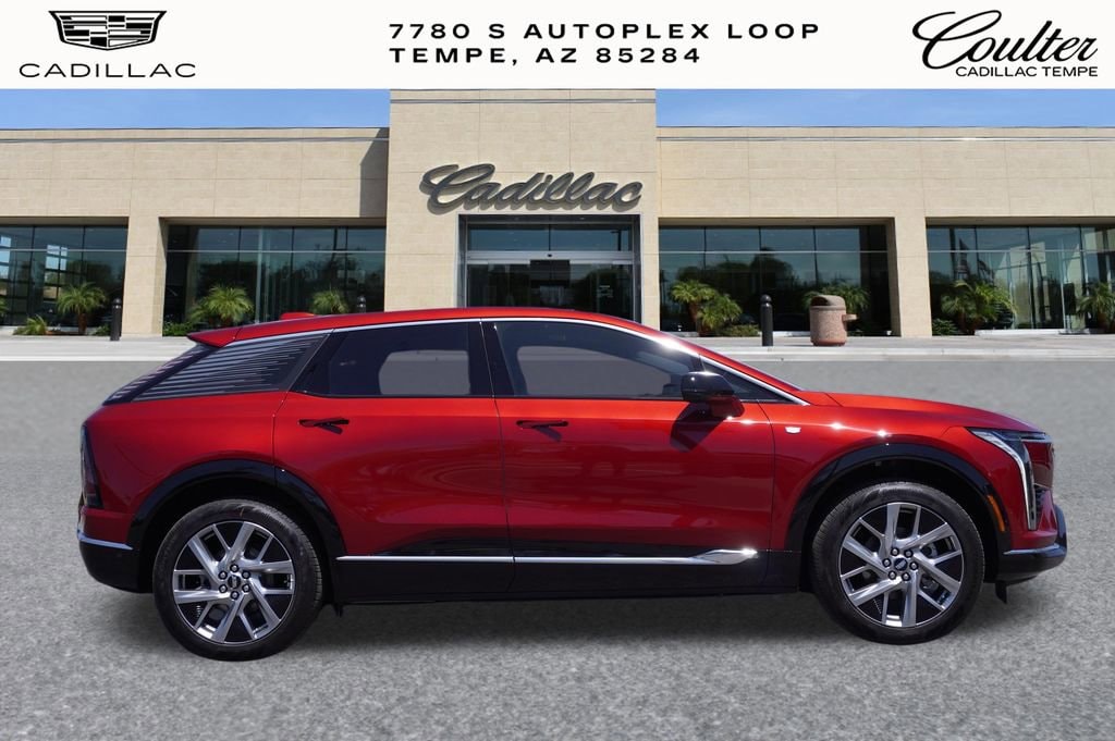 Experience The Difference At Coulter Tempe. Tempe Autoplex - i-10 and Elliot Road. Proud to be part of the Coulter Automotive Group - serving Phoenix since 1923. The Cadillac OPTIQ is equipped with 19 Speakers, 4-Wheel Disc Brakes, 6-Way Power Front Passenger Seat Adjuster, 8-Way Power Driver Seat Adjuster, ABS brakes, Air Conditioning, AKG Studio 19-Speaker Audio System, Alloy wheels, AM/FM radio: SiriusXM with 360L, Auto High-beam Headlights, Auto-dimming door mirrors, Automatic temperature control, Brake assist, Bumpers: body-color, Charging Module, Compass, Delay-off headlights, Driver 4-Way Power Lumbar Seat Adjuster, Driver door bin, Driver Seat Memory, Driver vanity mirror, Dual front impact airbags, Dual front side impact airbags, Electronic Stability Control, Emergency communication system: OnStar and Cadillac connected services capable, Four wheel independent suspension, Front anti-roll bar, Front Bucket Seats, Front Center Armrest, Front dual zone A/C, Front Passenger 4-Way Power Lumbar Seat Adjuster, Front reading lights, Fully automatic headlights, Garage door transmitter, Google Built-in, Heated door mirrors, Heated Front Driver and Passenger Seats, Heated front seats, Heated steering wheel, Illuminated entry, Inteluxe Seat Trim, Knee airbag, Low tire pressure warning, Memory seat, Navigation system: Google Automotive Services Capable, Occupant sensing airbag, Outside temperature display, Overhead airbag, Overhead console, Panic alarm, Passenger door bin, Passenger vanity mirror, Power door mirrors, Power driver seat, Power Liftgate, Power Lumbar Massage Driver Seat, Power Lumbar Massage Front Passenger Seat, Power passenger seat, Power steering, Power windows, Radio data system, Radio: Infotainment Experience, Rain sensing wipers, Rear anti-roll bar, Rear reading lights, Rear seat center armrest, Rear window defroster, Remote keyless entry, Security system, SiriusXM with 360L Trial Subscription, Speed control, Speed-sensing steering, Split folding rear seat, Spoiler, Steering wheel mounted audio controls, Telescoping steering wheel, Tilt steering wheel, Traction control, Trip computer, Turn signal indicator mirrors, Variably intermittent wipers, and Wheels: 20 Pearl Nickel Painted Alloy. Radiant Red Tintcoat 2026 Cadillac OPTIQ Luxury RWD 1-Speed Automatic Electric Motor